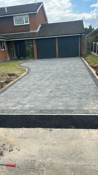 The project began with a thorough consultation with the client to understand their vision and requirements. They wanted a durable and appealing driveway that would lead to their twin garage while seamlessly blending with the surrounding landscape. After discussing various design options, we settled on a premier grey brick for the main surface of the driveway, complemented by a dark grey brick border surround. The design also featured a curved edge to meet the grass lawn, adding a touch of elegance to the overall layout.